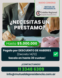 Préstamos de hasta $5.000.000 en hasta 30 cuotas por Descuento de Haberes.