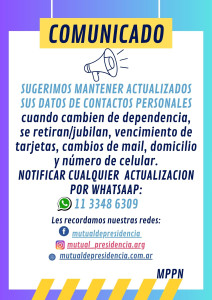 Si usted tiene inconvenientes en completar el formulario le solicitamos que se comunique con nosotros al siguiente mail: info@mutualdepresidencia.com.ar